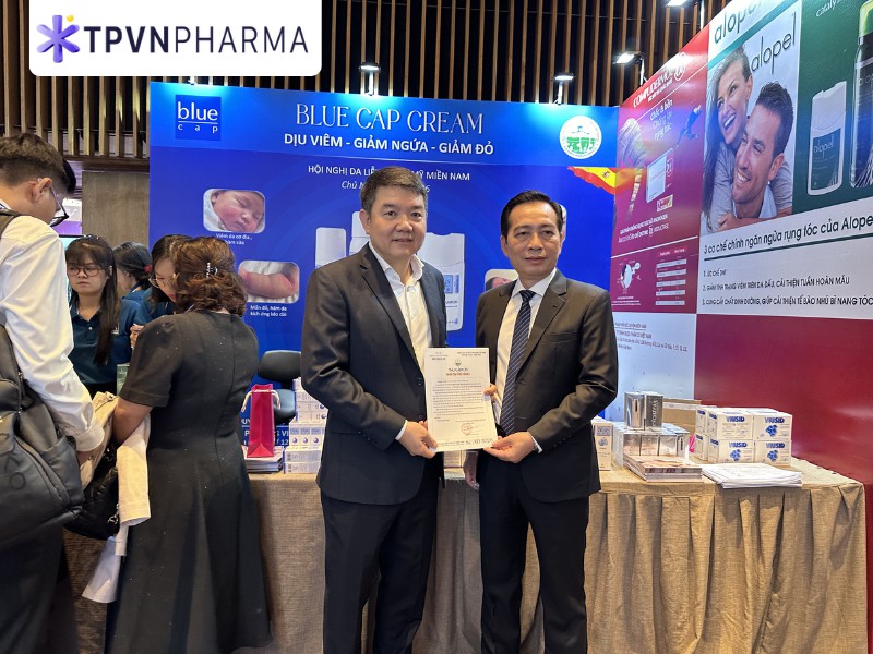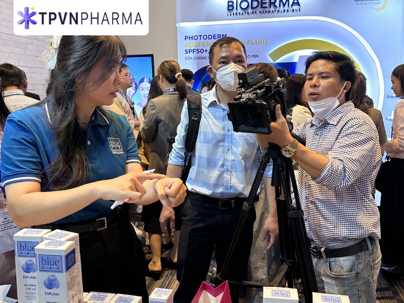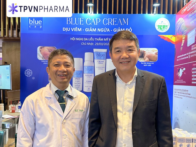 Tại gian hàng V7, các sản phẩm Blue Cap được đông đảo bác sĩ và chuyên gia da liễu quan tâm. Đây là sản phẩm nhập khẩu chính hãng từ Catalysis - Tây Ban Nha ứng dụng công nghệ độc quyền kích hoạt phân tử (MAT). Sản phẩm giúp kiểm soát viêm da hiệu quả, mà hoàn toàn không chứa corticoid. Sự quan tâm của các bác sĩ và chuyên gia, đối với giải pháp an toàn này, là động lực lớn cho TPVN Pharma và 3S Việt Nam Pharma.